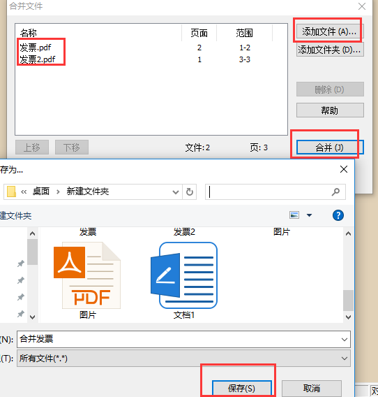 1打开“极速PDF编辑器”,在文件中选择“合并”,添加要合并的电子发票文件,然后点击合并和保存