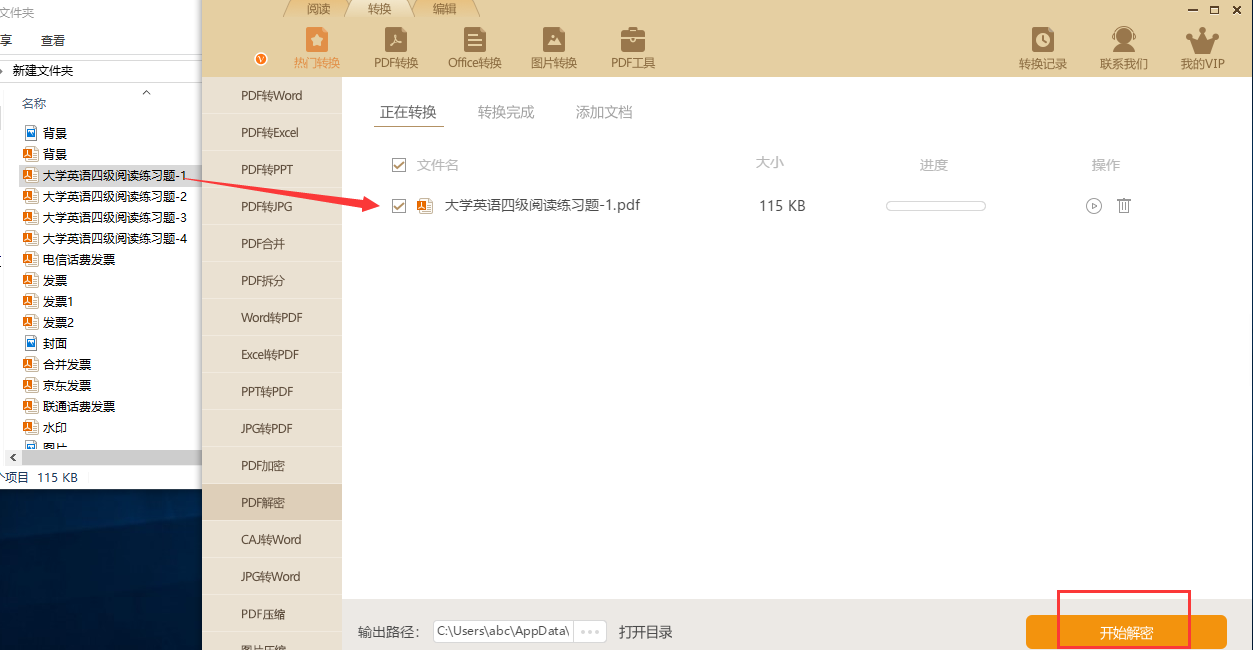打印PDF文档时显示文件受保护,所以需要先进行解密才能正常打印,以下就是操作步骤